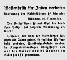 Himmler, commander of all German police, forbidding Jews to possess any weapons